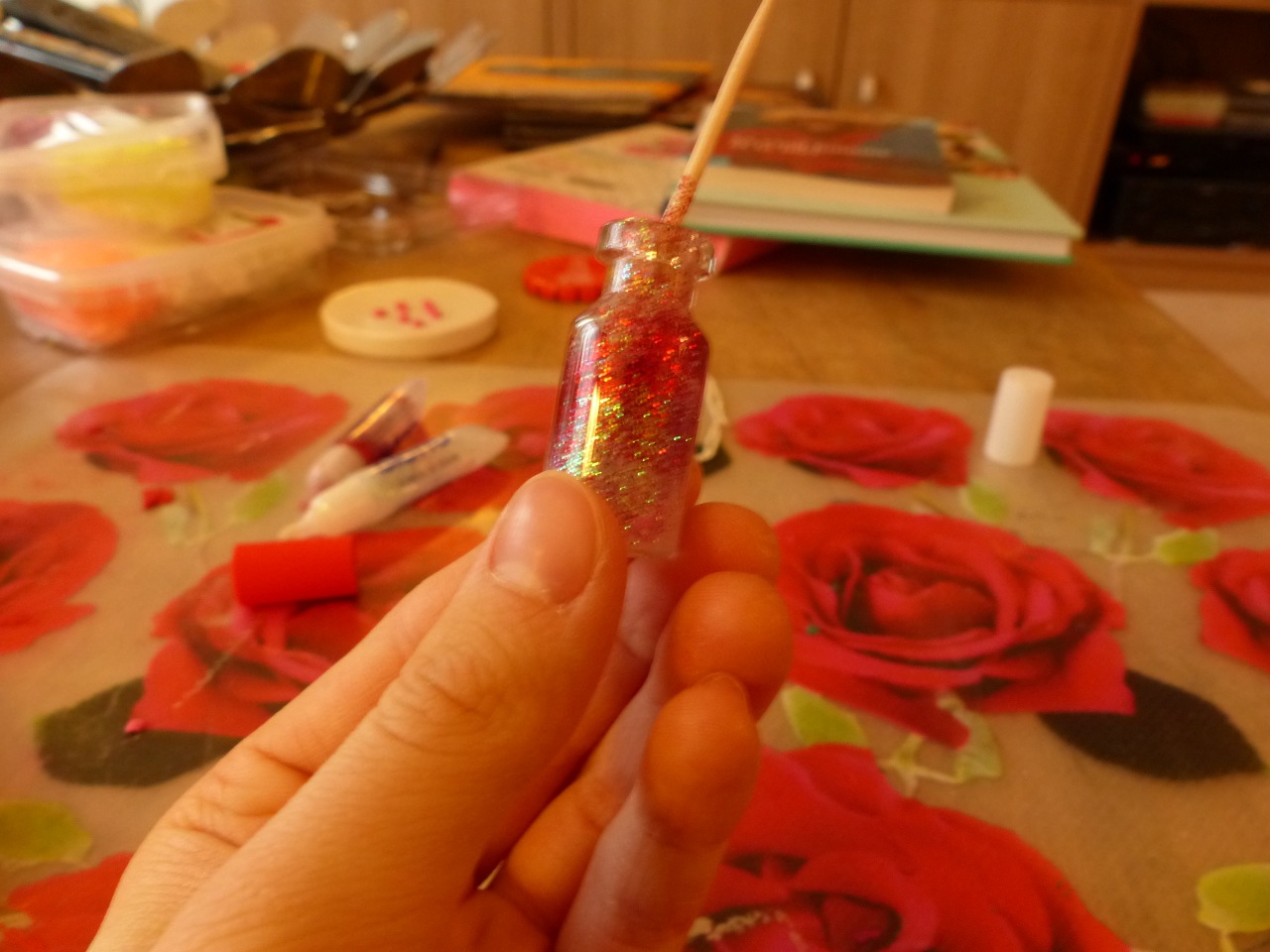 Avec le cure-dents, ajoute les petits coeurs et colle-les sur la paroie de la bouteille pour qu'on puisse les voir, et rajoute le bouchon!
